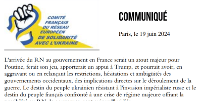 Communiqué du RESU du 19 juin 2024 sur les élections françaises en relation avec la question ukrainienne