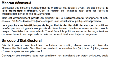 Éditorial du 19 juin 2024 – L’ennemi principal de Macron, le Front Populaire !