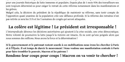 Document – Appel de l’Intersyndicale d’Aubenas pour le 6 juin 2023 : « Macron, on va venir te chercher ! »